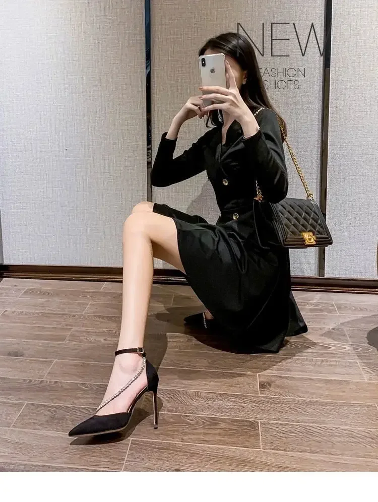 • التصميم والأسلوب :تتميز هذه الأحذية بإصبع قدم مدبب مثير وكعب أنيق، مما يبرز الأناقة والرقي.